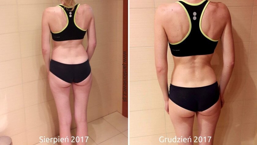 Poniżej zmiany, które zaszły w okresie 20.08-19.12.2017, czyli ok. 4 miesiące, przy częstotliwości dwóch treningów personalnych w tygodniu.
